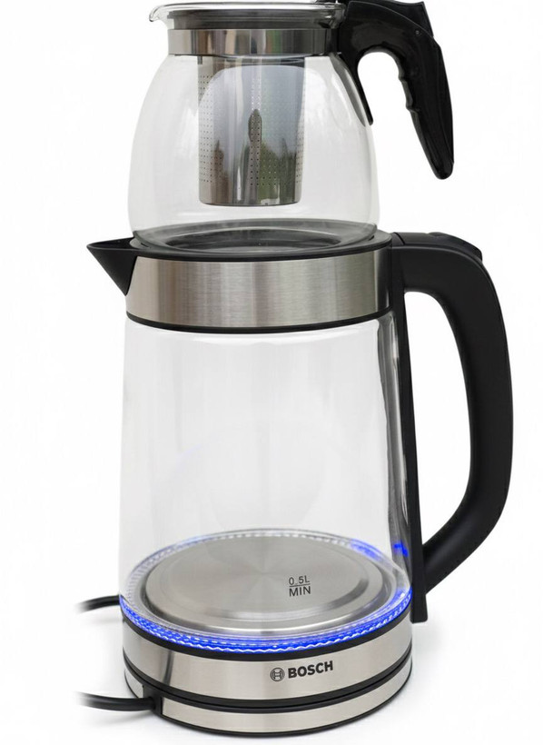 چایساز بوش یک دستگاه حرفهای و کاربردی برای تهیه چای تازه و گرم در منزل یا محل کار است. این مدل دارای کتری 2.2 لیتر و قوری 1.3 لیتر است که امکان آمادهسازی حجم مناسبی از چای را فراهم میکند و برای خانوادهها یا دفاتر کوچک ایدهآل است.